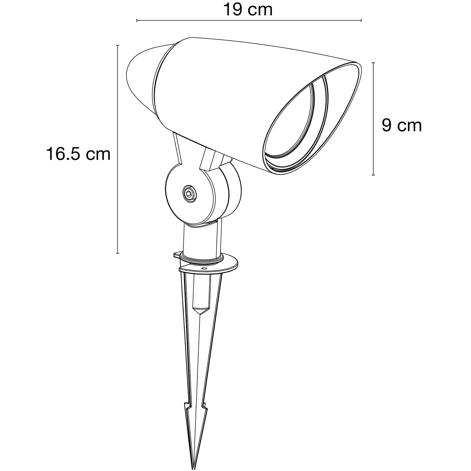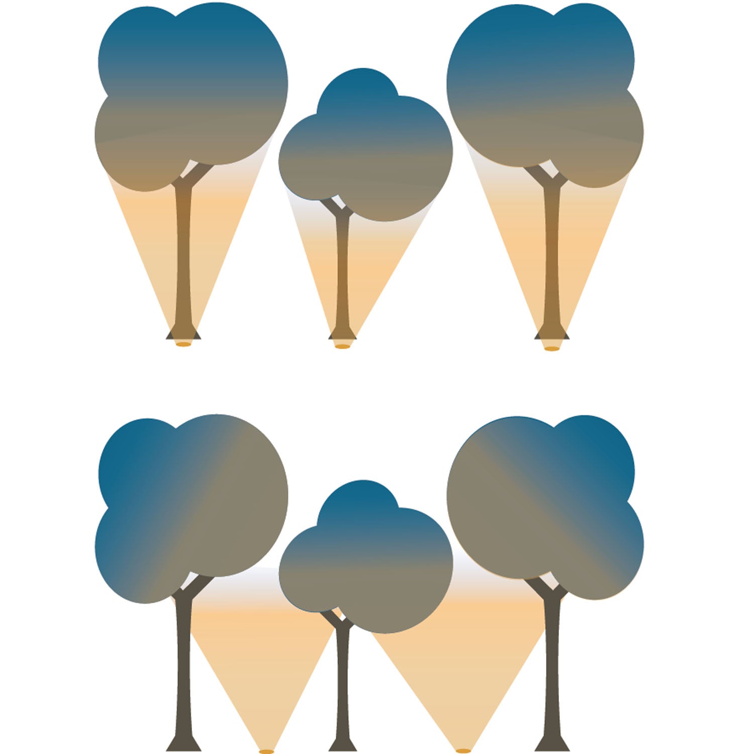 Placera lampan direkt under ett träd för att få en vertikal ljuspelare som sträcker sig högt upp i kronan. För en bredare ljusspridning och täckning av större ytor kan lampan som sagt placeras längre bort från objektet som ska lysas upp.