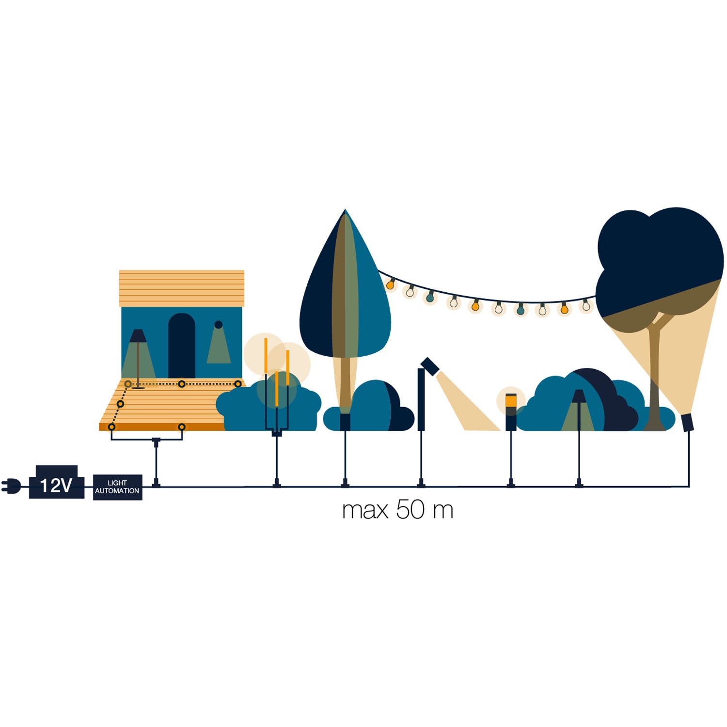 Skapa en stämningsfull och funktionell trädgårdsbelysning med LightsOn Garden Plug & Play, ett flexibelt och prisvärt 12-voltsystem som du enkelt installerar själv – helt utan behov av elektriker. Systemet är designat för att kunna byggas ut upp till 50 meter, vilket ger dig friheten att anpassa och utöka din belysning i takt med dina behov. Med varmvitt ljus och en stilren skandinavisk design är lamporna utvecklade hållbara material för att klara vårt nordiska klimat.