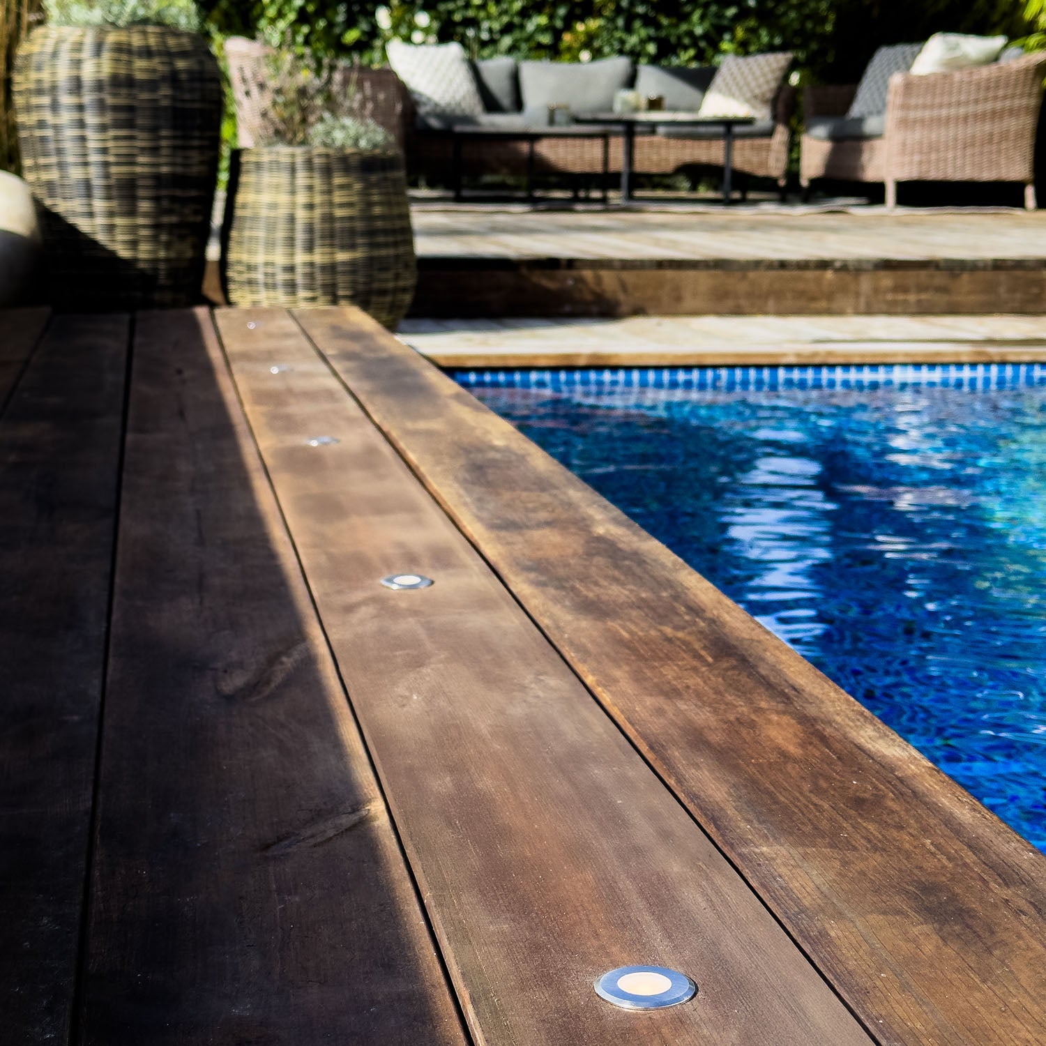 Dexter är en elegant decklight i aluminium, designad för infällning i trädäck, stensättning eller andra plana ytor. Lampan skapar inte bara en stämningsfull atmosfär utan fungerar också som en praktisk markör för trappsteg och andra nivåskillnader.