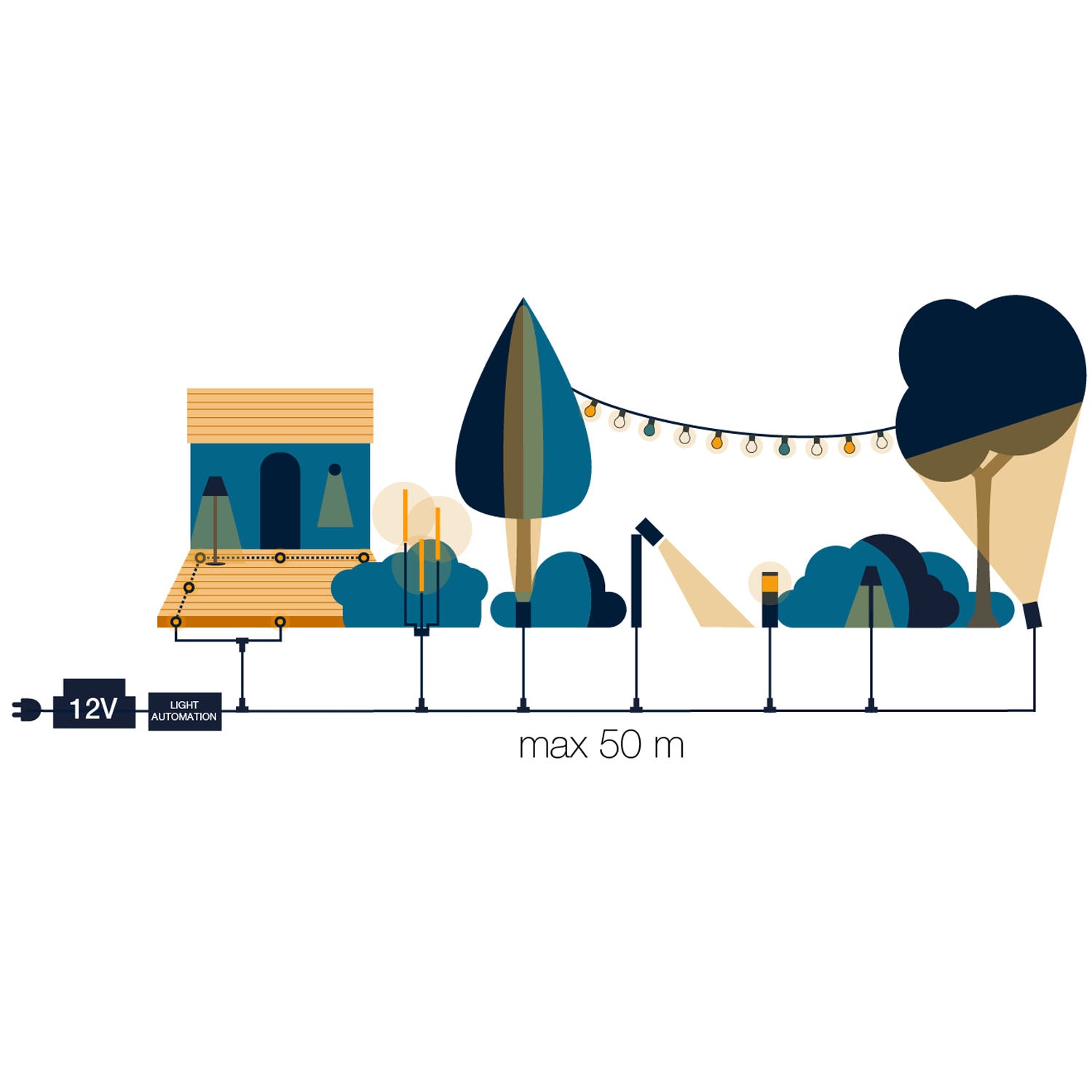 Vill du att lamporna automatiskt tänds vid skymning? Lägg till en Ljussensor (art 5023), så slipper du tänka på att slå av och på belysningen manuellt. Eller varför inte en Smart Control (art 5129) för programmering och styrning via mobilen.