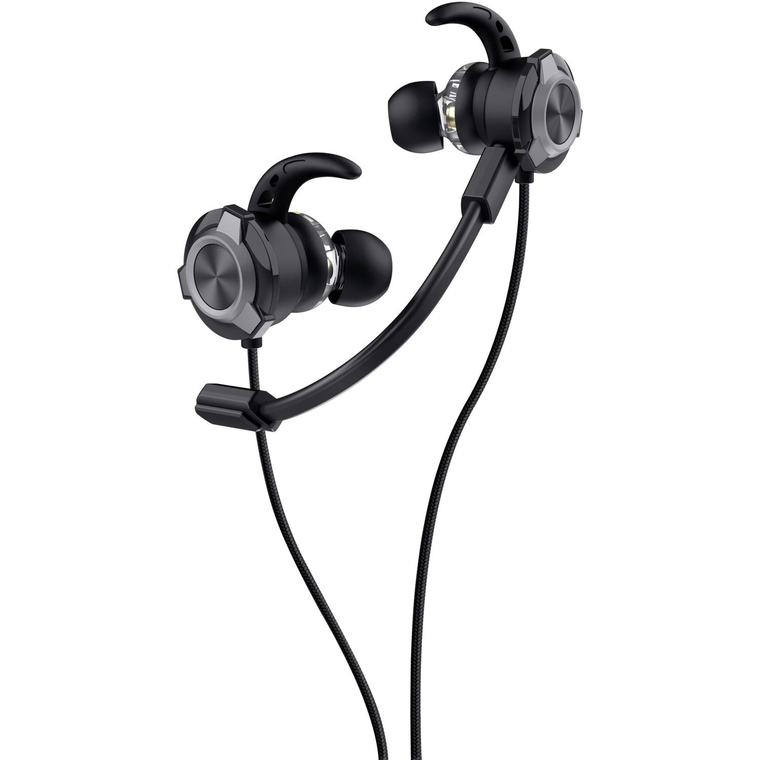 - Hörlurar för flera plattformar med dubbla mikrofoner och inbyggda kontroller för sömlöst spelande
