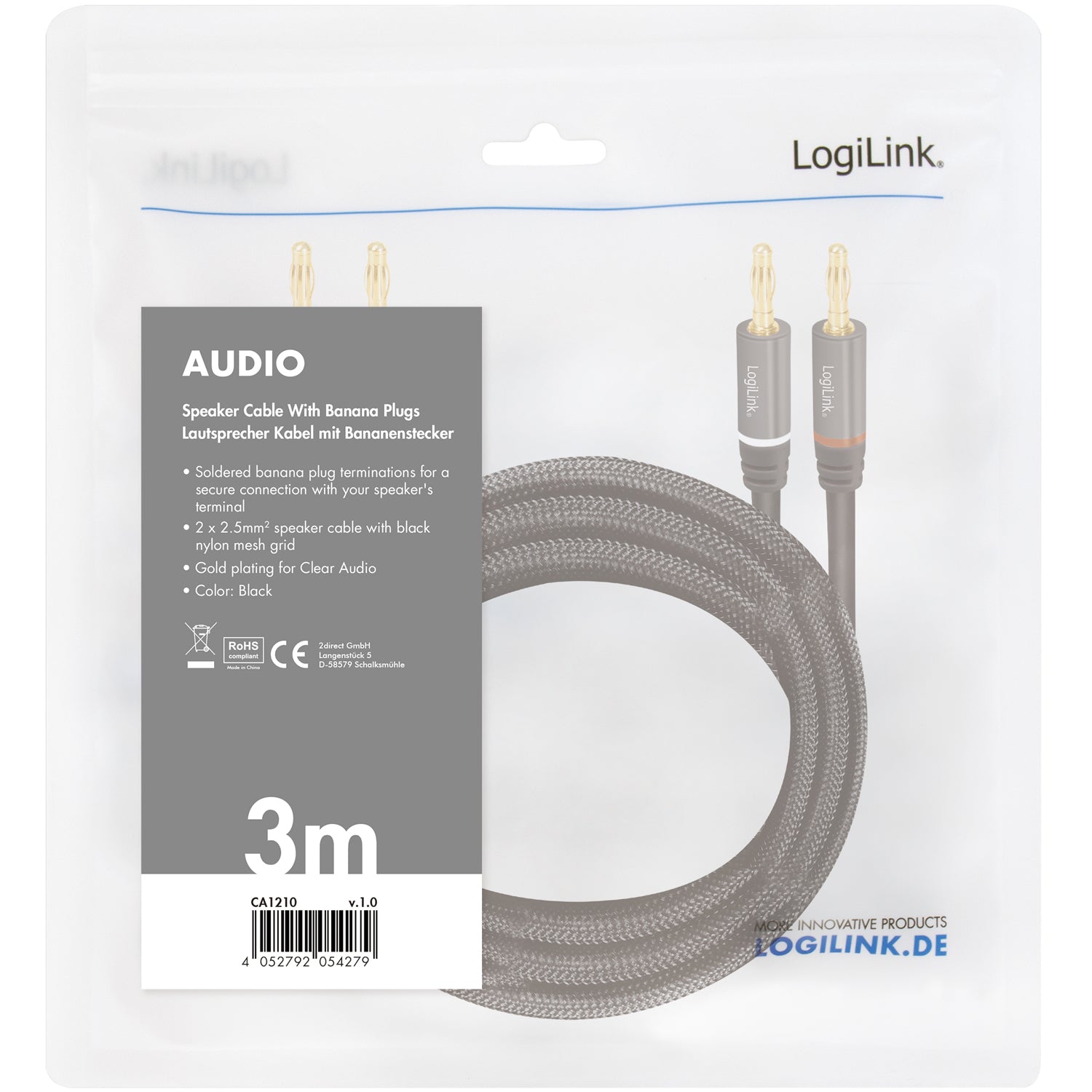 LogiLinks högtalarkabel med guldpläterade kontakter ger utmärkta anslutningsmöjligheter och ett klart ljud. De lödda banankontakterna ger en säker anslutning till högtalarens terminal och är markerade med en färgkodring för enkel polaritetsidentifiering. De guldpläterade kontakterna och kablarna i ren koppar ger maximal överföringskvalitet.