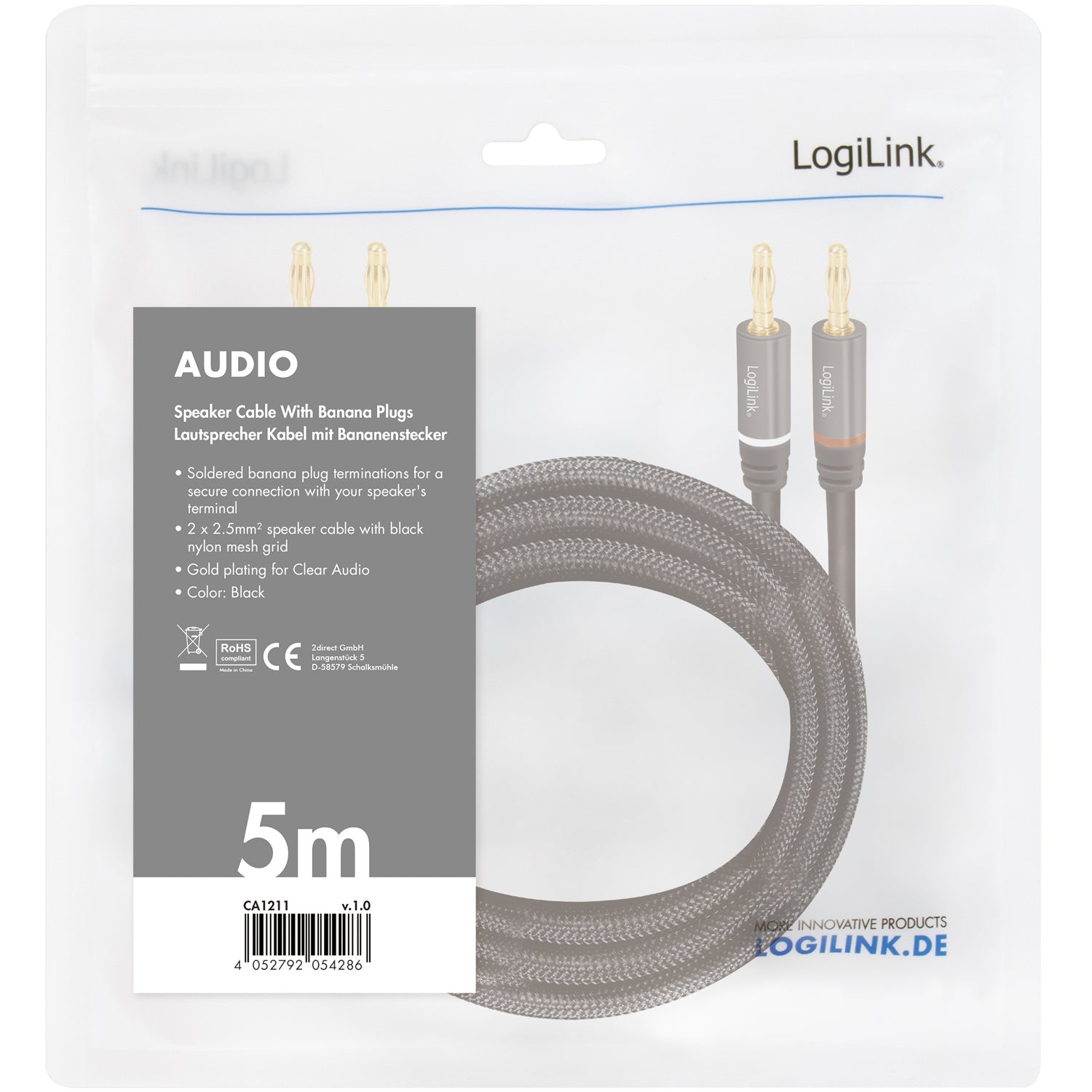 LogiLink 5 meters högtalarkabel med banankontakter 2 x 2,5 mm²