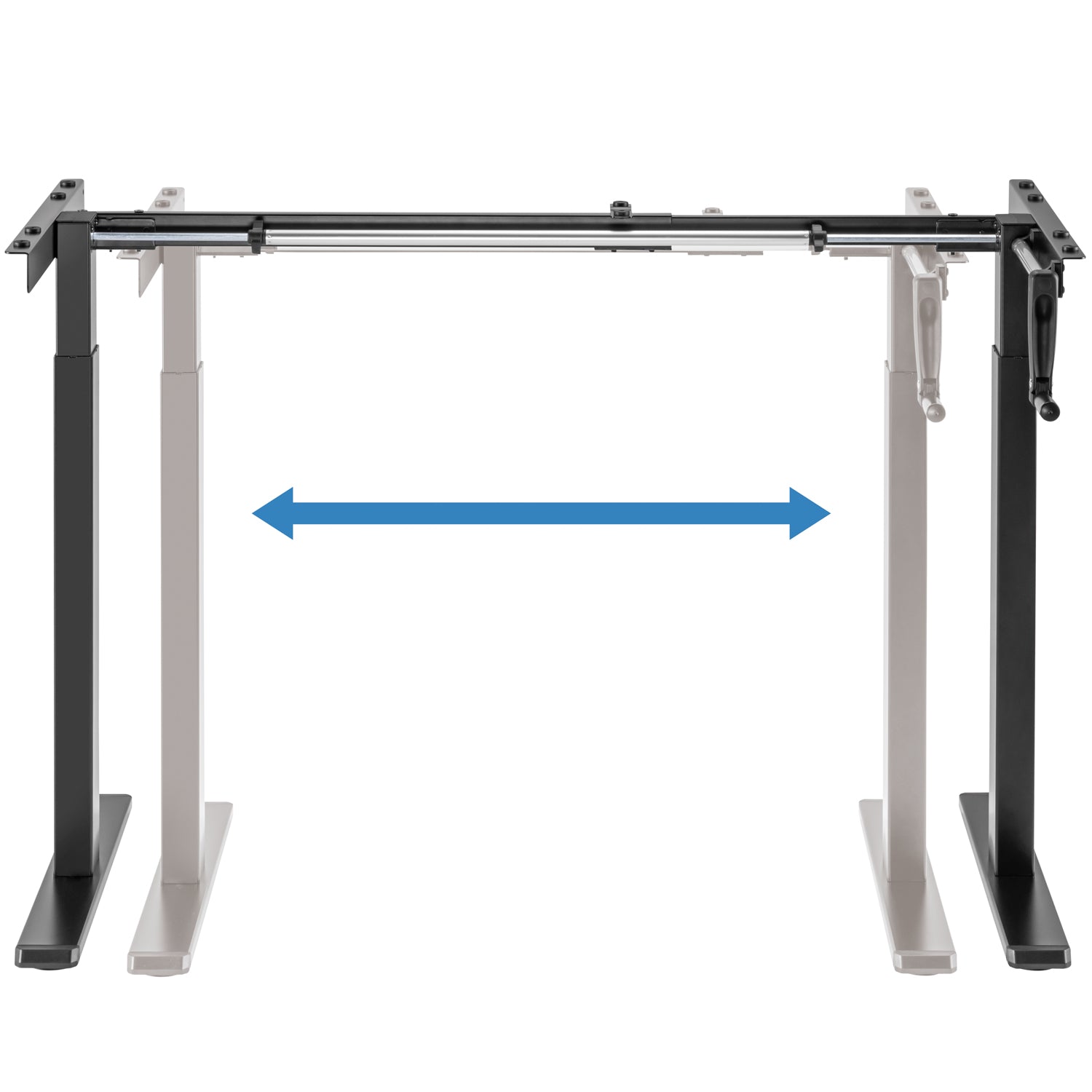 Justera skrivbordshöjden manuellt med vevhandtaget, från 70 till 118 cm.