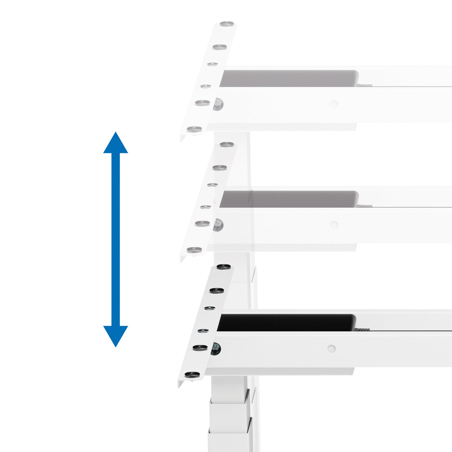 Skrivbordsramen har två ben, var och ett med teleskopisk förlängning i 3 delar, vilket ger mer flexibla justeringsalternativ.
