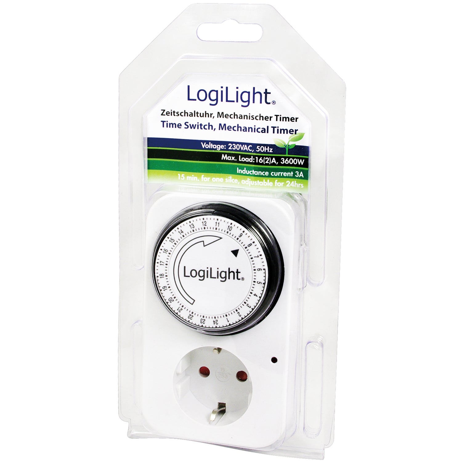 Med denna mekaniska timer kan man enkelt ställa in när enheterna ska slås på och av automatiskt. Ställ in på/av i steg om 15-minuter