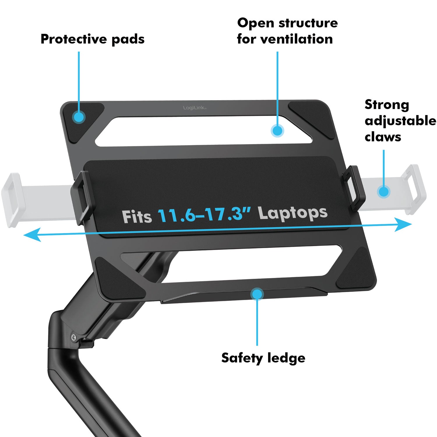 LogiLink Laptop-hållare för monitorarmar, för 11,6-17,3". VESA 75x75
