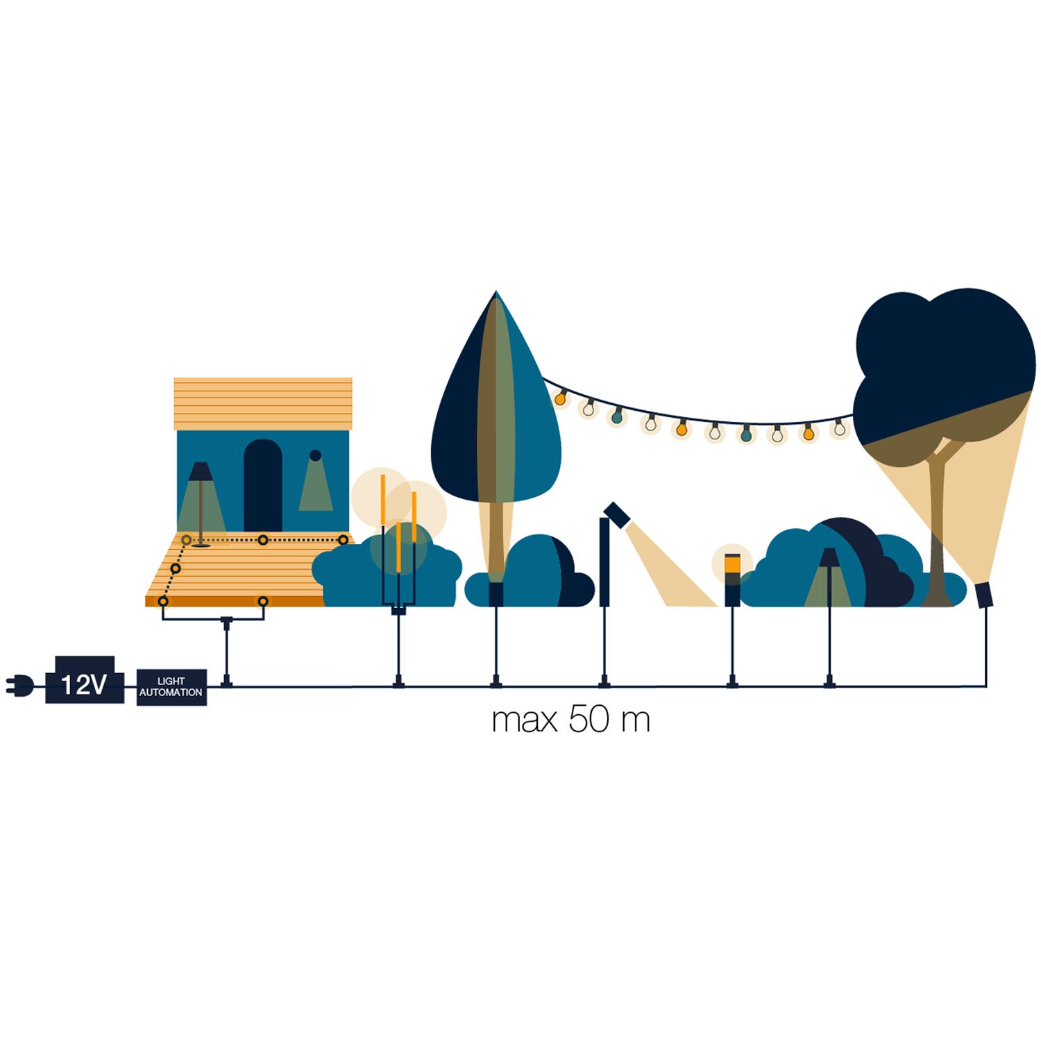 Skapa en stämningsfull och funktionell trädgårdsbelysning med LightsOn Garden Plug & Play, ett flexibelt och prisvärt 12-voltsystem som du enkelt installerar själv – helt utan behov av elektriker. Systemet är designat för att kunna byggas ut upp till 50 meter, vilket ger dig friheten att anpassa och utöka din belysning i takt med dina behov. Med varmvitt ljus och en stilren skandinavisk design är lamporna utvecklade hållbara material för att klara vårt nordiska klimat.